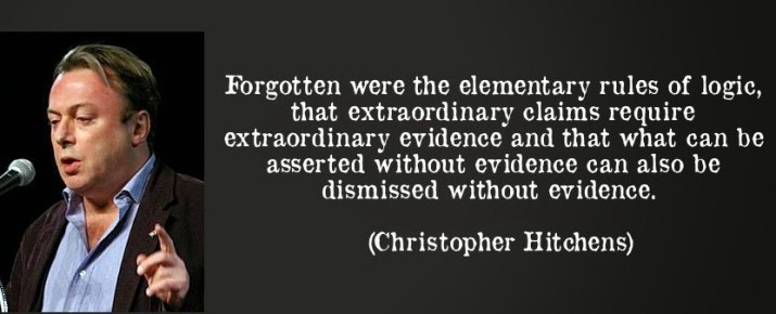 Of course religious folk generally respond to criticisms like these with faith – their belief in god and his teachings is beyond such earthly needs as ‘proof’. But as I’ve mentioned on here before, faith can seriously backfire for religious folk. If your beliefs are true simply because you have faith in them, and despite any and all evidence to the contrary, then can’t anything be true? If a psychopath honestly believes god wants him to make a wallet out of people’s noses, then isn’t that equally as valid as your faith in a loving and merciful god? How can both be true when they obviously conflict each other? This is the philosophical concept known as Hitchen’s Razor: